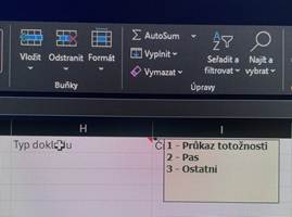 - Pokud nad takovou buňku najedete myší, zobrazí se poznámka, kde je napsáno, jak danou buňku vyplnit (ANO / NE, nebo možnosti vyplnění, typicky číslo a text)