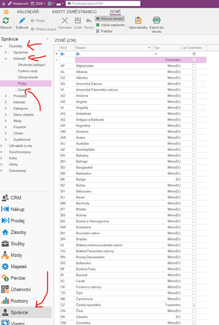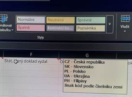 - Do buněk se vypisuje dvoupísmenná kód – CZ, SK, atd.