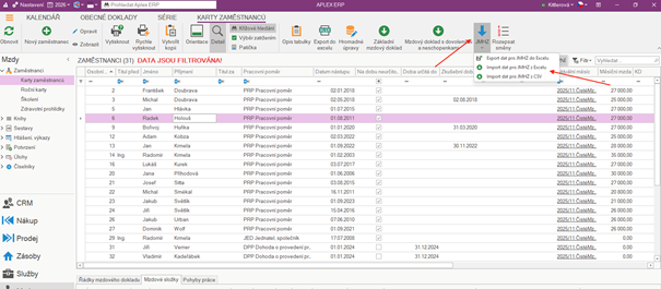 Při větším množství zaměstnanců může být doplňování dat do systému zdlouhavé. Pro usnadnění jsou připraveny tyto funkce:
